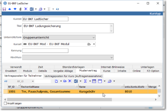 Diese Inhaltsteile stammen aus den MusterVertragsposten der Kurstypen: Für jedes nahezu gleiche Angebotsteil erzeugen Sie einen Kurstypen bzw. legen es in einem bestehenden Kurstyp an.