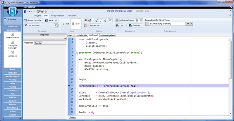 Integrierte Entwicklungsumgebung: Testumgebung und Debugger mit BreakPoints und WatchList