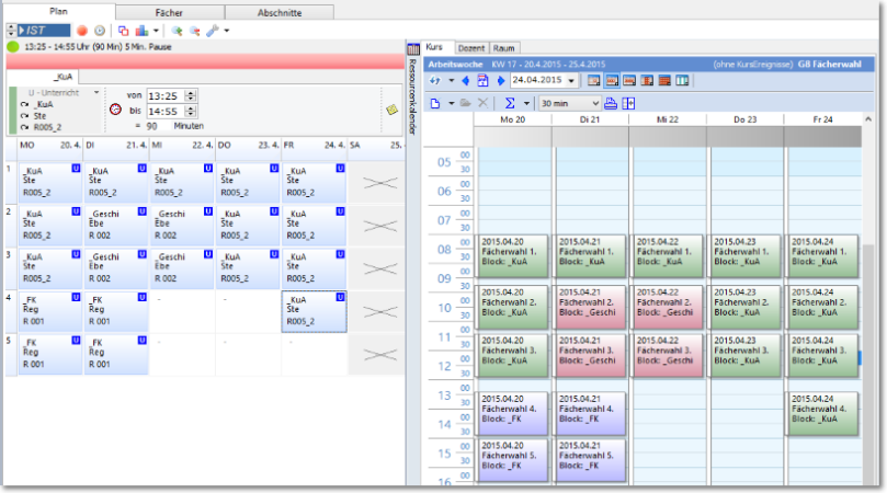 Sie können die Fächer auch farblich wiedererkennen. Das gekoppelte Fach war "_KuA" in grün.