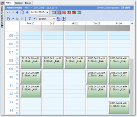 Blicken wir anschließend auf einen Kurs, mit dem "_KuA" gekoppelt wurde, hier "G8 abH":