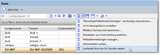 Aus dem Einsatzplan der Vorplanung oder dem geplanten Kurs selbst wählen Sie die Funktion "Laufende Nummer ..."