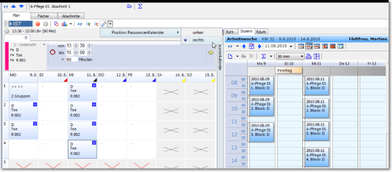 Insbesondere um zu sehen, ob der Dozent noch anderweitig geplant ist oder Lücken in seinem Plan hat, wird der Ressourcenkalender laufend aktualisiert.